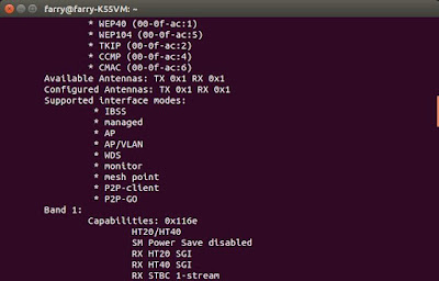 1. Buka Terminal dan ketikkan : iw list, kemudian lihat pada bagian Supported interface modes = AP